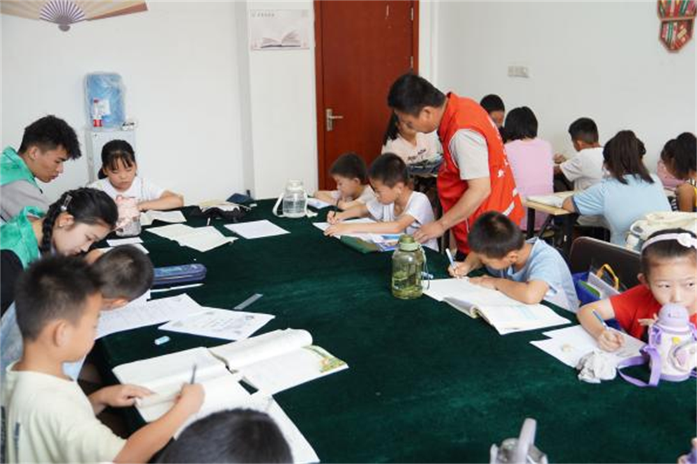 “今天的活动太有意思了,哥哥姐姐给我们辅导完作业后,还组织了有趣的旗帜小课堂,我都开始期待明天的课程啦”,暑期课堂结束后,8岁的张鸿鹤小朋友高兴地与来接他的奶奶分享。