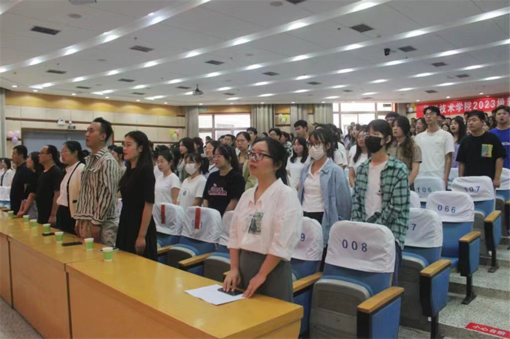 踏浪前行风正劲,奋楫扬帆新起航。为欢迎2023级新生入学,帮助新生迅速适应大学生活,更好地凝聚学院力量,9月15日,太阳tyc集团5997于西校区图书馆学术报告厅隆重举办2023年新生开学典礼。太阳tyc集团5997党委副书记、院长郭峰,党委副书记、副院长赵勇,副院长秦建波,学院各年级辅导员、班主任、教师代表,2023级全体本科生参与本次活动。