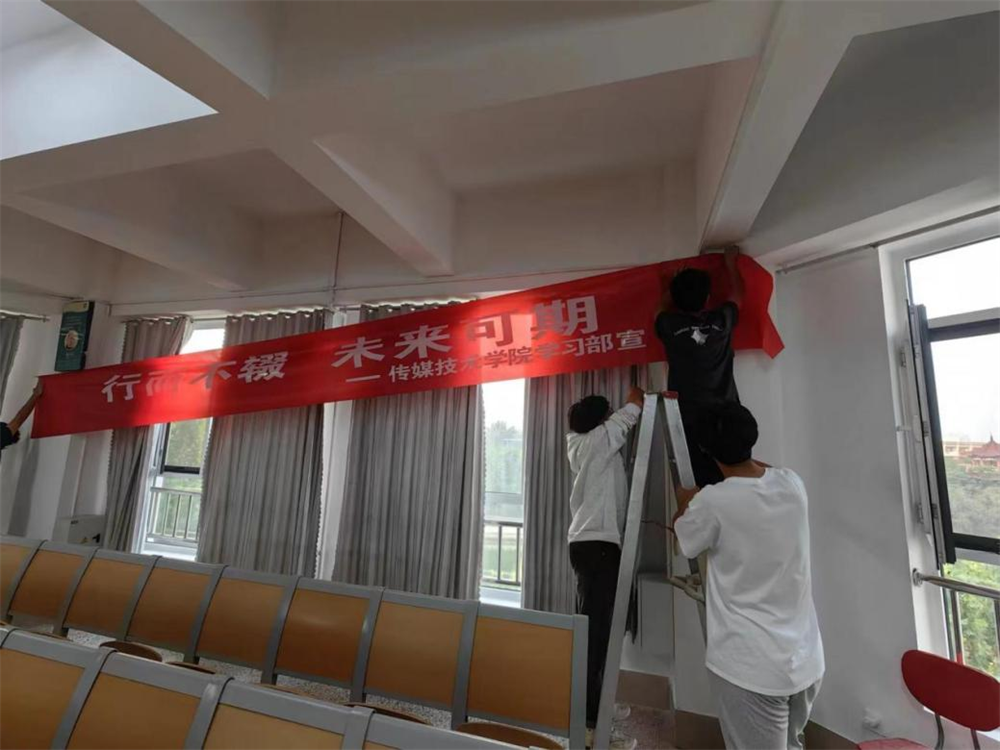 学风建设不是一蹴而就,而重在长时间的坚持,学习发展部按照践行学风建设的要求,通过收手机、课间巡查等方式严查学生课上使用手机的问题,并在每个教室张贴了有关建设良好学风的横幅,共计11个。教室后方贴满“行而不辍,未来可期”“唯有青春无售价,莫让手机盗年华”等标语,以铿锵有力的话语,提醒同学们养成良好的习惯,珍惜青春年华。