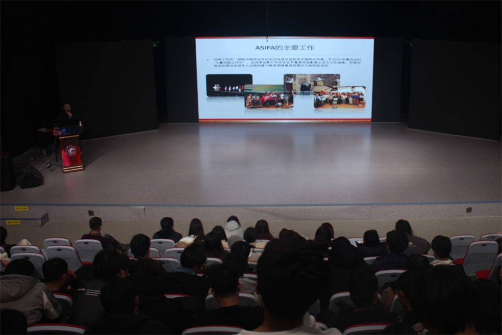 观影动画,筑梦未来。活动伊始,张驰向同学们简要介绍了世界动画协会的起源和历史,分析了各国动画协会的构成情况以及产业发展状况,重点讲解了中国厦门国际动画节及所设“金海豚奖”、昂西国际动画节、萨格勒布国际动画节等一系列世界知名动画节和对应奖项。在优秀作品展映环节,张弛以《成长与视野,从毕设选题说开来》为题,针对《Coin》、《Coffin》、《Bestia》等十三部短片进行逐一讲解,阐述了作品的选题角度、角色塑造以及故事架构,进一步分析了作品的艺术风格、思想主旨与创作方法等方面内容。