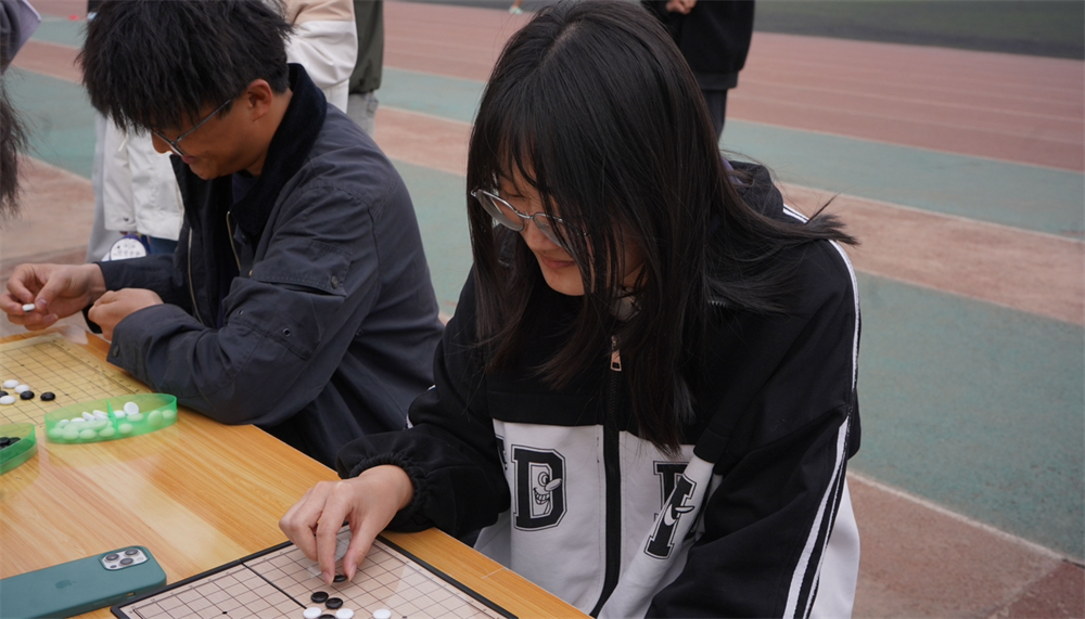 锐弈进取,以棋会友。比赛开始前,裁判人员向同学们详细说明比赛规则和分组情况并对现场秩序作出了强调,本次比赛采取六轮制,双人对决出胜负的形式。比赛正式开始,参赛选手们相对端坐进行两两对弈,大家在比赛中沉着思考、灵活应对,方寸之间,你攻我守,在棋盘上呈现了黑白子龙争虎斗的局面。同学们屏气凝神,仔细走好手中的每一步棋,招招式式均经过仔细斟酌,棋有棋风,弈有弈趣。比赛全程每位选手都严格遵守比赛规则,充分展现自身的实力与水平。