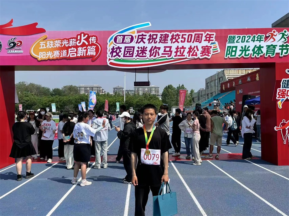 比赛过程中,运动员们不断调整呼吸,保持稳定的步伐,专注于自己的节奏,挑战着身体的极限,咬紧牙关,坚持到底。经过激烈的角逐,选手们陆续抵达终点,并在终点领取了特制的纪念卡片。同时,完赛的选手们在休息过程中参与了主办方精心设计的游戏,通过完成踢毽子、跳绳等小游戏的方式获得不同的纪念印章,这些小游戏不仅为比赛增添了轻松愉快的氛围,也让同学们在紧张激烈的比赛后,放松身心,享受运动的乐趣。在颁奖仪式上,我院2022级广播电视编导2班的宋杰同学凭借出色的表现荣获男子甲组第五名的好成绩,他的优异表现赢得了在场同学们的热烈掌声和喝彩。