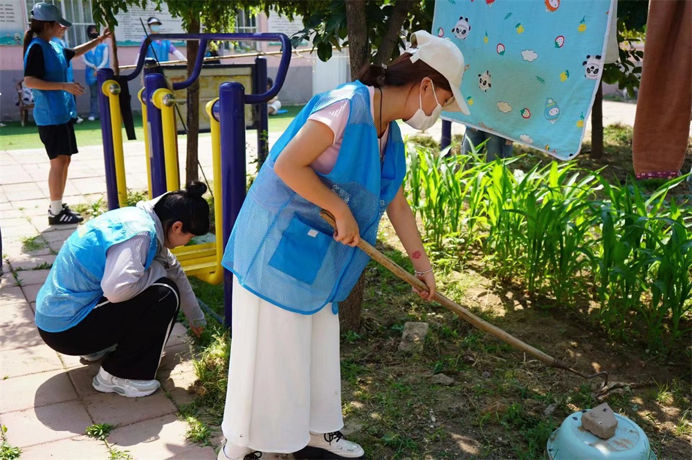 青春志愿心,敬老传温情。活动伊始,学生们早早来到养老院,在工作人员的带领和介绍下学生们被分成了两组,一组成员拿起工具,投入到养老院的绿化工作中,他们有的俯身弯腰手工除草,有的利用手中的工具进行松土,互相配合,分工明确,共同维护着养老院的居住环境,不仅展现了他们吃苦耐劳的精神,还增进了彼此之间的默契和信任。