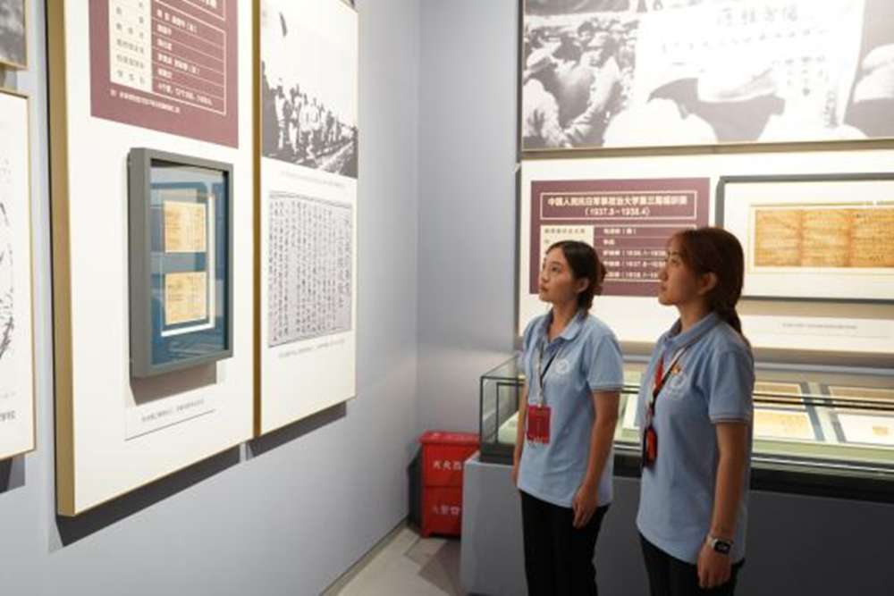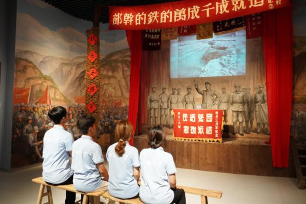 实践队来到了中国抗日军政大学旧址,成员们参观了当年的教室,里面摆放着简单的桌椅,黑板上似乎还留存着老师们授课的痕迹,在展览厅里,丰富的图文资料和实物展示,生动地再现了抗大的发展历程和辉煌成就。参观过后,成员们在中国抗日军政大学旧址外的广场上进行了体验教学抗大校歌,激昂的旋律响起,成员们仿佛与那些英勇的抗大学子们融为一体,心中涌起无尽的豪情壮志。“黄河之滨,集合着一群中华民族优秀的子孙……”歌声中仿佛看到了无数热血青年为了民族解放事业,奔赴前线,英勇杀敌的身影。