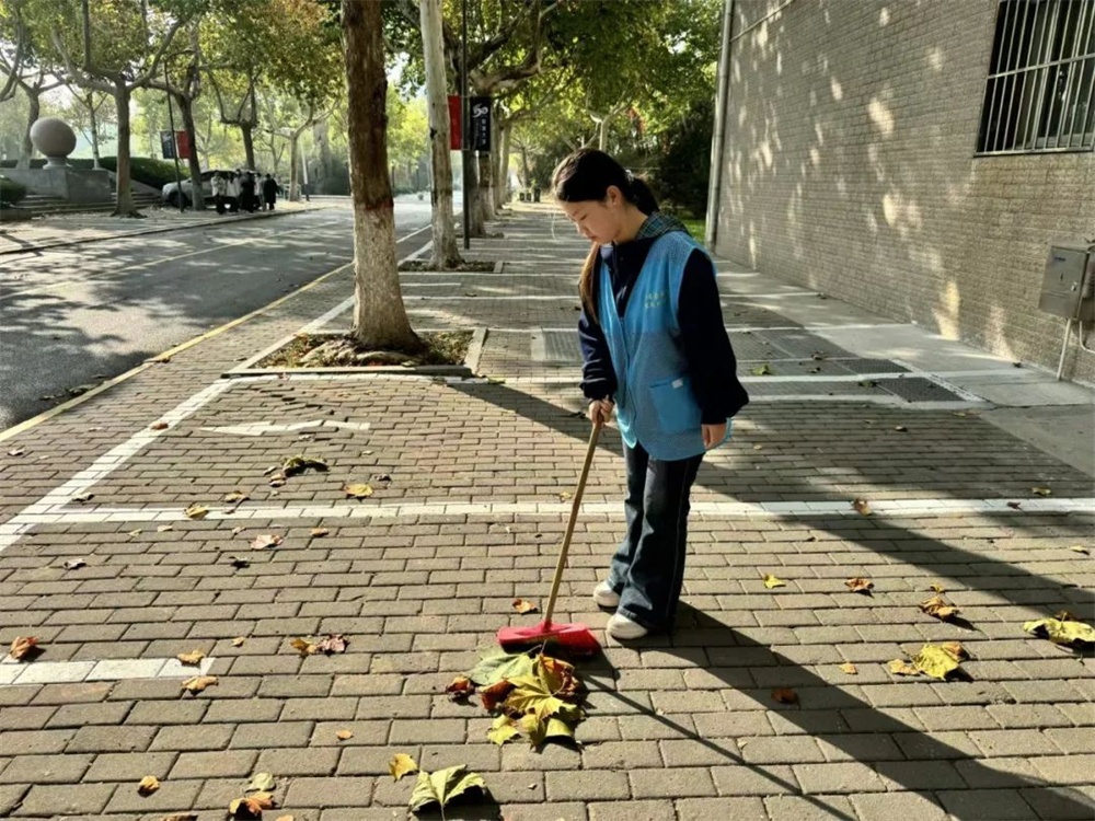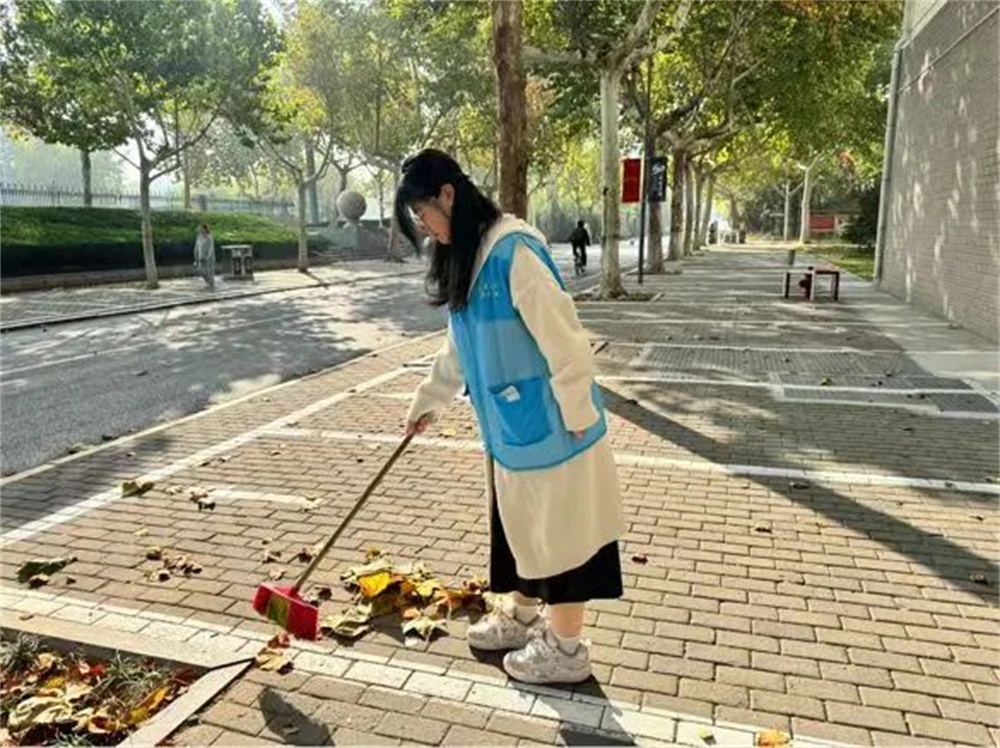 增强环保意识,建设美丽校园。活动前期,志愿者们精心准备了环保袋、扫帚、簸箕等工具,明确了各自的任务与工作区域。活动现场,他们以小组为单位,按照既定区域有序地展开活动,一组志愿者负责捡起地上的落叶,另一组志愿者用扫帚将落叶聚在一起,再由其他志愿者用簸箕将落叶装入环保袋中。校园内,志愿者们忙碌而坚定的身影,构成了一幅幅宁静而动人的画面,成为了校园里一道引人注目的风景线。