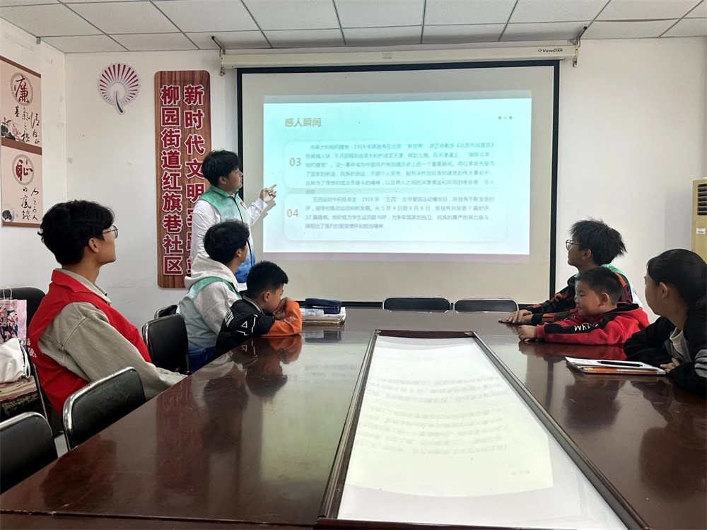 最后,服务队成员围绕一系列红色人物和事迹介绍展开讲解。在活动现场,小朋友们全神贯注地聆听志愿者的讲述,从中学习红色文化、汲取奋进力量。此次课堂活动成效显著,有利于青少年厚植爱国情怀,推动社会主义核心价值观的遵守与践行。