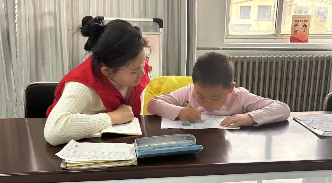 志愿传递温暖,文化点亮童心。活动前期,服务队成员提前到达社区教室,交流讨论活动的主要内容和注意事项,确保活动安全有序进行,待小朋友到齐后,活动正式开始。活动期间,服务队成员耐心解答小朋友们的疑难问题,指出作业中的错误并循序渐进地引导他们得出正确答案,加深他们对知识点的掌握程度,进一步培养小朋友的自主思考能力。