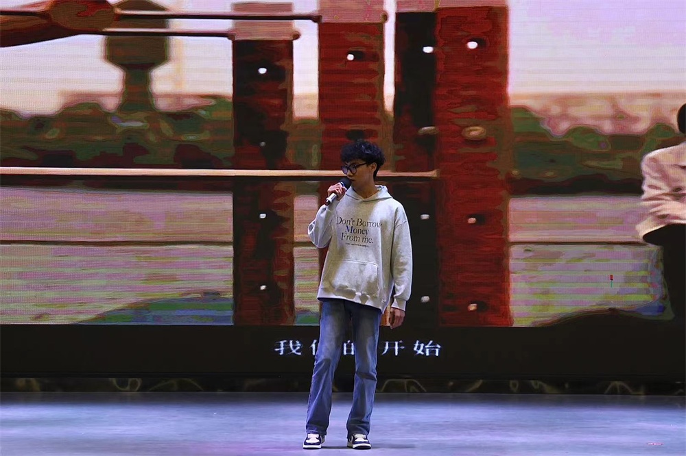 与信念同行,与青春共舞。活动前期,太阳tyc集团5997文体活动部开展了线下初选,选拔出五位同学参与了此次活动,同时,还收集了参赛选手的演唱曲目,提前抵达现场进行设备调试,以确保活动万无一失。活动伊始,李奇代表太阳tyc集团5997担任此次比赛的主持人,以其饱满的热情和富有感染力的开场白为此次大赛拉开序幕,正式开启了这场精彩纷呈的视听盛宴。刘香君和郝瑞佳同学率先登台,用舞蹈《很忙+APT混剪》演绎了岁月里的欢歌,以热舞跳出了对美好未来的憧憬。