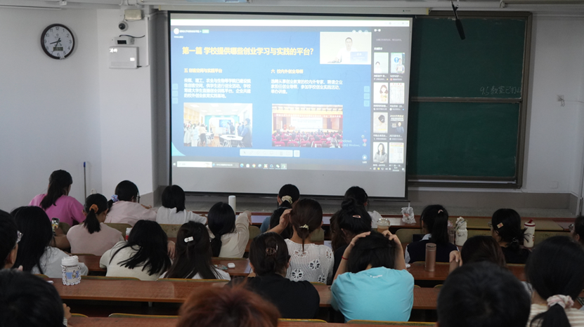 激发创新活力,点燃创业激情。在学校的统一安排下,新生集中观看了创新创业讲座直播,主讲人结合生动案例,分析创新创业的概念、方法和技巧,并引导学生思考如何将专业知识与创新创业相结合。同时强调专业课是提升能力的重要途径,鼓励学生扎实掌握专业知识,积极运用所学解决实际问题,以培养创新思维和开拓精神,为未来职业发展奠定基础。