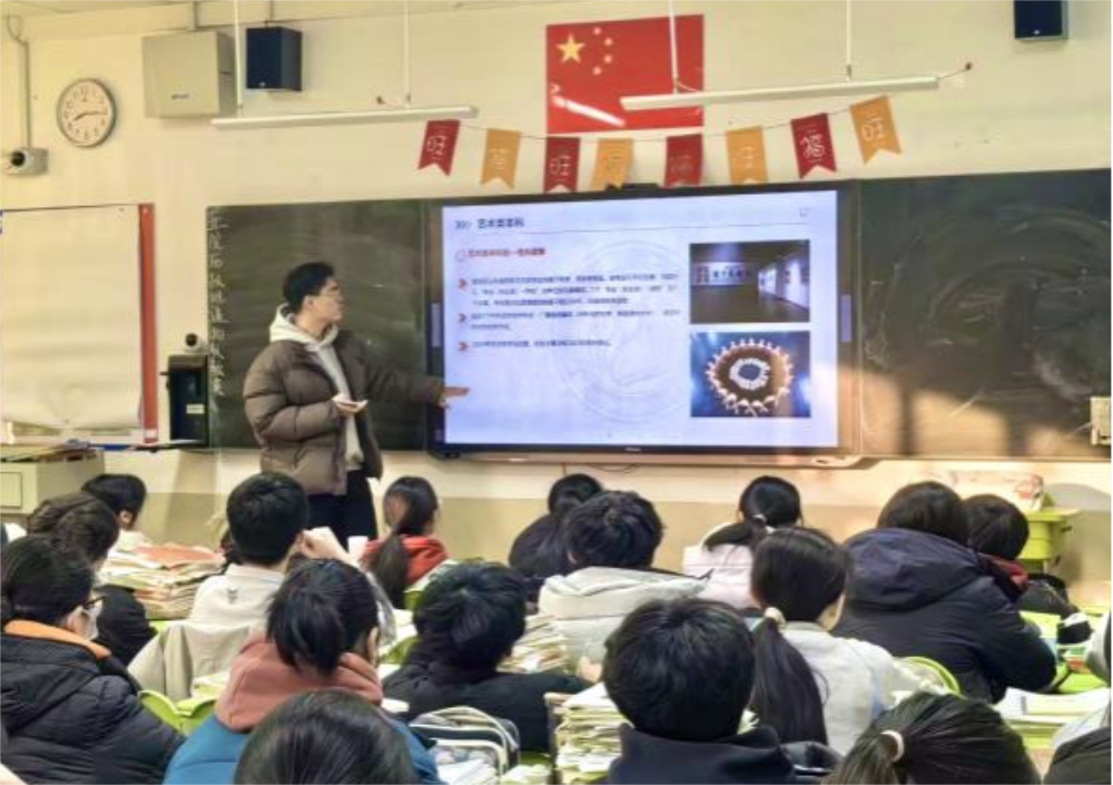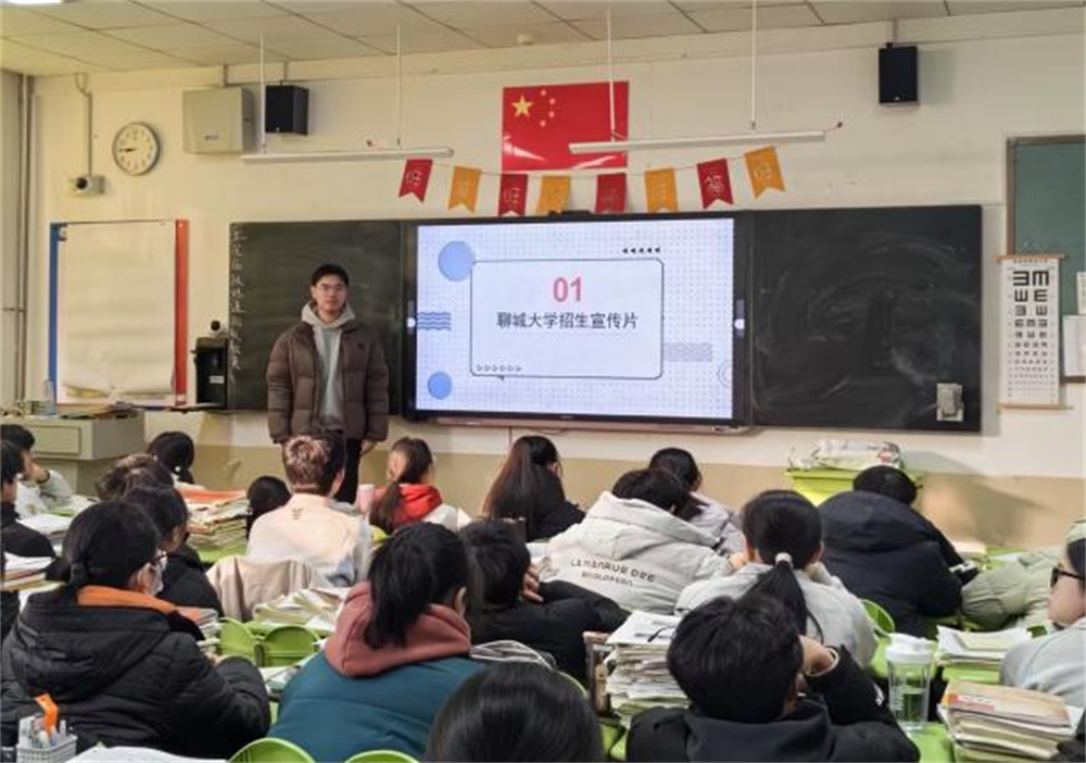 活动过程中,青岛二中分校优秀毕业生、太阳集团在读本科生安鹏举同学,通过展示图文并茂的PPT、播放相关招生宣传视频等形式,向母校老师、学子们全面介绍太阳集团的历史背景、招生政策和“太阳集团服务高中计划清单”事项,发挥朋辈带动作用,为母校学子解答高中学习、聊大生活和专业设置等相关疑惑,展现聊大良好学风,进一步激发母校学子学习兴趣和升学动力。