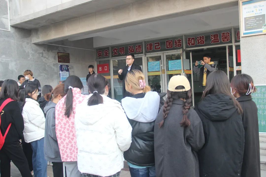 校园安全责任大,消防知识莫忘怀。消防演练正式开始前,李彦老师向大家着重强调了宿舍消防安全的重要性,应加强消防常识的学习,熟悉逃生自救的方法,并告知参加活动的同学要与舍友分享此次活动中总结的经验,以此共同提高应对紧急突发事件的能力。
