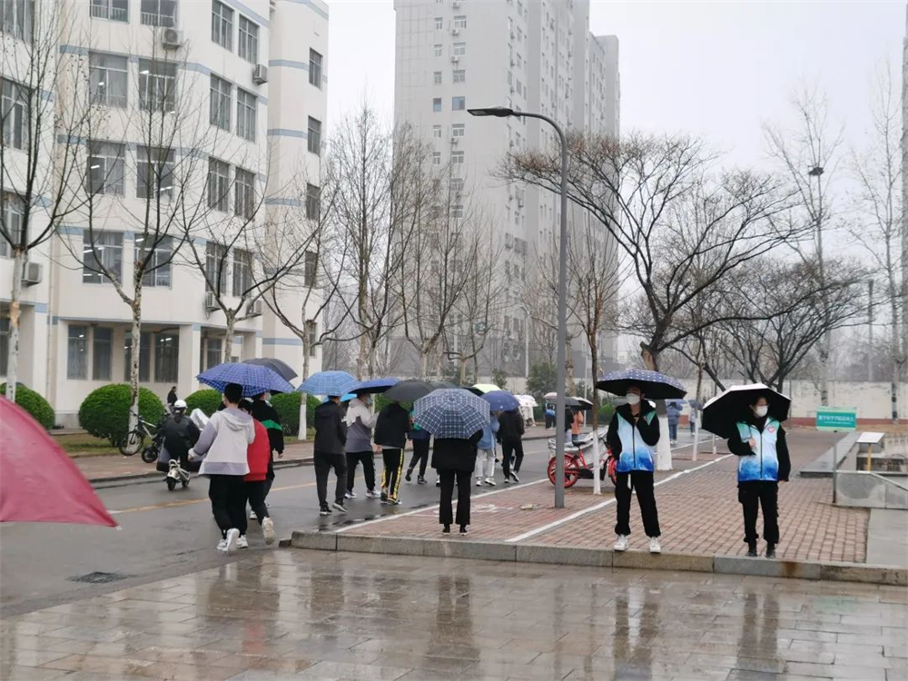 在东校校医院核酸检测组织工作中,志愿者积极承担起整理队伍、维持现场秩序、协助校医院人员开展工作的责任,尽显青春担当。而对于在西校区11号教学楼开展的全员核酸检测,学生组织各部门参与其中,不喊苦不喊累,雨天仍不停歇,雨幕中的“小蓝人”们形成了一道道靓丽的风景线。面对疫情,学院志愿者们用实际行动助力校园疫情防控,无怨无畏。