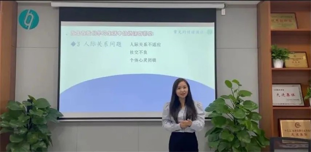 本次教育活动由金鑫老师担任主讲人,她通过PPT的形式,围绕当代青少年常见的心理困扰、如何进行自我察觉、怎样学会积极求助三个方面进行讲解。金鑫老师从入学适应问题、学习问题、人际关系、谈恋爱与性方面的问题、自我意识的形成与发展中的心理问题、人格缺陷、情绪困扰这七个常见的心理困扰向同学们展开介绍,并举出多例心理咨询案例供同学们参考。