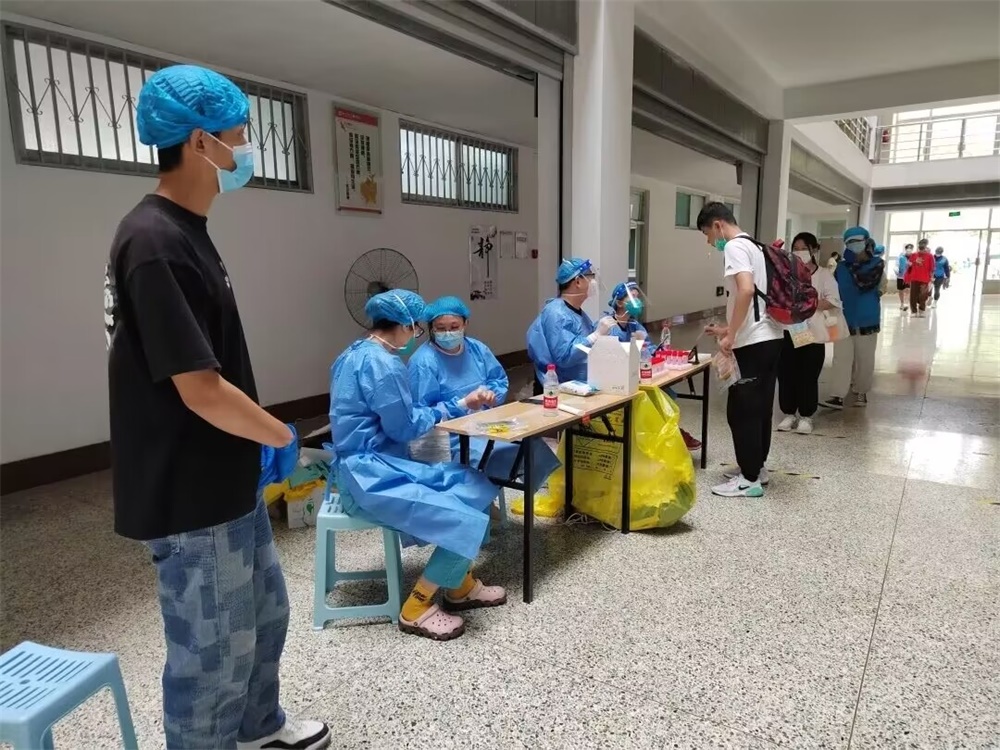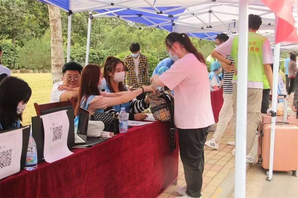 基于当下防控疫情的严峻形势,为确保迎新工作高效有序进行,让新同学们感受到家的温暖,学院领导统筹兼顾、全体同学积极响应,数百名志愿者踊跃报名并提供志愿服务,为新生提供全方位、全天候、多角度、不间断的便利服务。为提高工作效率,学院设置了新生入学手续办理服务台和新老生一对一迎接模式。此外,学院承担西校区核酸检测保障协调工作,在志愿者的引导下,新生通过核酸检测通道进入检测点,按规定有序完成核酸应检尽检工作。