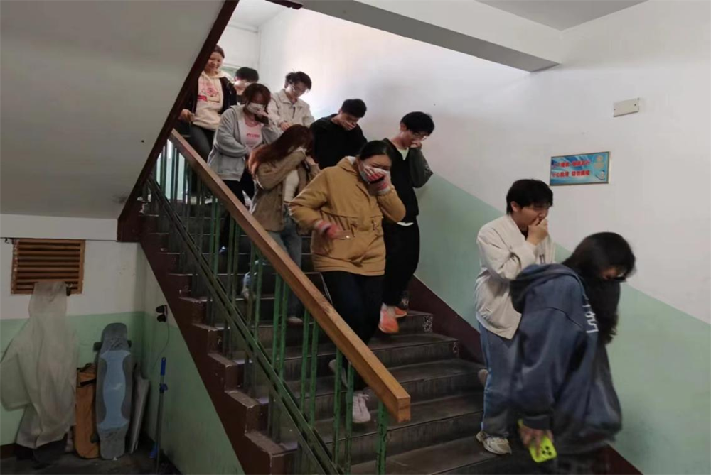 消防安全强把关,演练防患于未然。本次演练模拟了宿舍楼发生火灾的场景,演练过程中学生们积极参与,紧张有序地完成了各项任务。演练开始前,宿舍管理中心成员在宿舍楼道内准备好烟饼,消防栓等相关工具,在公寓楼下集合清点参与演练的人数。同学们到达指定位置后,宿管部人员吹响哨声模拟消防警报并点燃烟饼,学生们听到警报后捂住口鼻、俯身前行,迅速而有序地撤离。到达安全地带后,工作人员迅速清点人数,确保每位学生都安全撤离。演练接近尾声,工作人员向学生们讲解了火灾发生的原因、危害及预防措施等消防知识,介绍了灭火器的正确使用方法,组织同学们有序进行灭火器实操演练,同学们积极参与,认真实操。活动结束后,同学们纷纷表示通过本次消防演练掌握了消防安全知识,深刻意识到了消防安全的重要性。