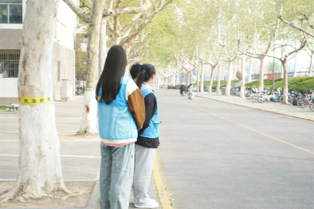 牢记交通准则,守护生命安全。活动开始前,负责人将志愿者划分为三组并分配了服务时间段,以确保高效完成服务工作。活动伊始,志愿者们在学苑一楼前集合,由负责人阐述活动主要内容及注意事项,为大家分配马甲,并带领各组员前往指定区域。活动过程中,志愿者们分工明确、配合默契,时刻关注道路上骑行同学的佩戴头盔情况,及时发现并提醒未戴头盔的同学戴好头盔,并向其讲解了安全佩戴头盔对于保障生命安全的重要性,加强他们的交通安全意识。