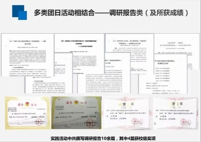 图3 团日活动调研报告及所获成绩展示