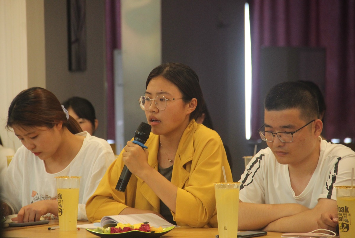 增强党员意识,树立党员形象。活动伊始,赵勇老师做了开场致辞,同学们一同观看了毕业生党员视频。随后,毕业生党员依次发言,赵爽回忆了自己的考研经历,并鼓励学弟学妹抓住机会锻炼自身,积累经验;刘珺绯分享了大学四年的心路历程,提醒同学们作为党员要记住自己的责任。李焕芹老师在发言中肯定了毕业生党员的工作,并送上了对毕业生的祝福,他叮嘱同学们多干实事,遵照习近平总书记的要求,树立远大理想,热爱伟大祖国,担当时代责任,勇于砥砺奋斗,练就过硬本领,锤炼品德修为。最后,宋培宪老师对党员同学的模范带头作用和对学院的贡献提出了表扬,同时要求同学们全面发展,确定自己的位置,发挥党员作用,为人民和社会奉献自身。叮嘱教诲之余,老师还与同学们进行了亲切交谈,认真倾听了同学们对未来的展望,并给出了有效的建议。餐厅沙龙座谈会结束后,同学们意犹未尽,纷纷与老师、同学合影留念,活动在和谐欢快的氛围中活动。