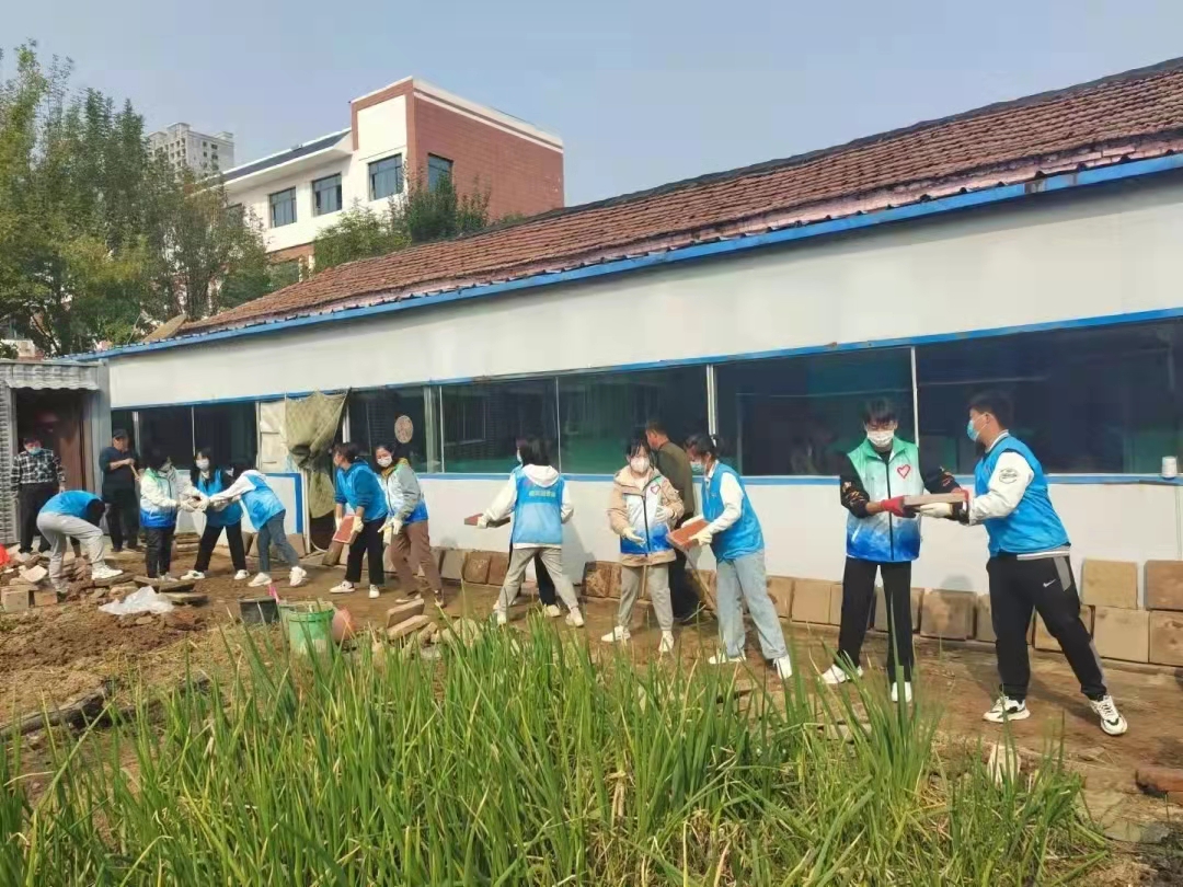 在志愿者们的不懈努力下,成垒的砖块被整齐排列在地,老人们体贴地送来水果和零食,成员们与他们促膝谈心,畅聊家长里短并耐心询问老人们的身体和生活起居状况,整个公寓欢声笑语不断、满是温馨。
