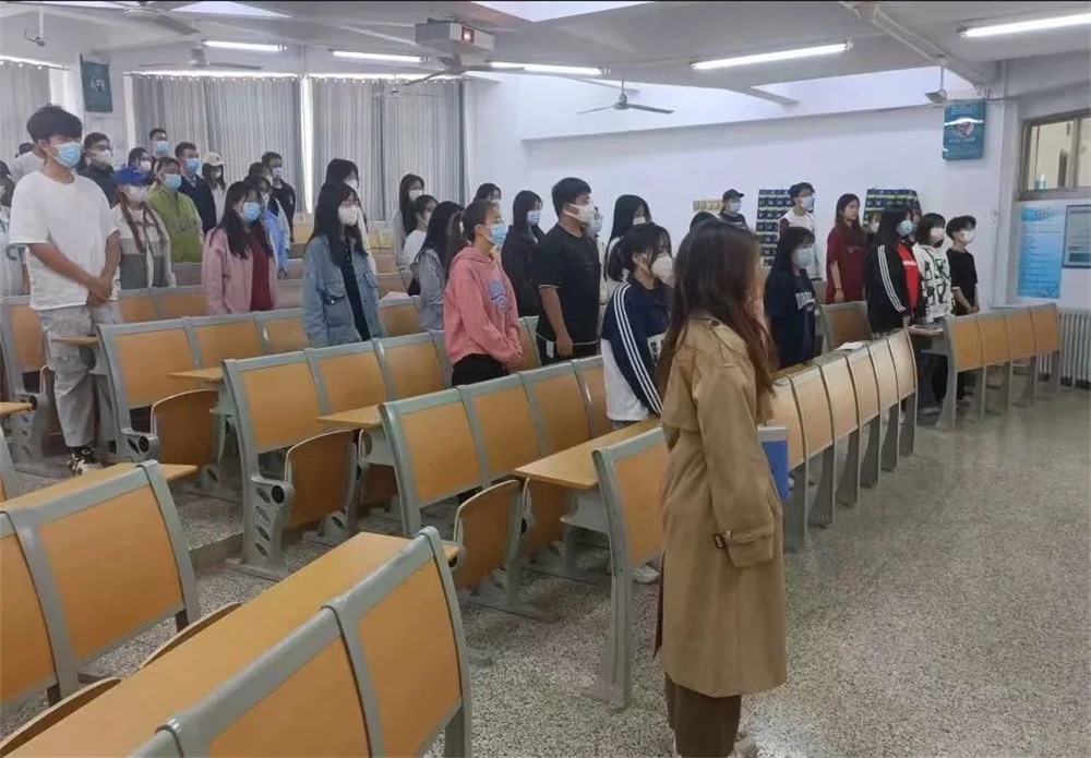 仪式在激昂的国歌中拉开帷幕,由主持人常金彤发言,对新团员进行勉励并提出具体要求。团干代表田庆宇上台发表感言,全体团员在其带领下庄严宣誓,高唱团歌。最后,常金彤对新团员表示祝贺,并表示新团员要学习团章,了解团史,坚持中国共产党的领导,拥护社会主义、共产主义,认真学习,以优异的成绩汇报社会,为祖国的强大做出贡献。