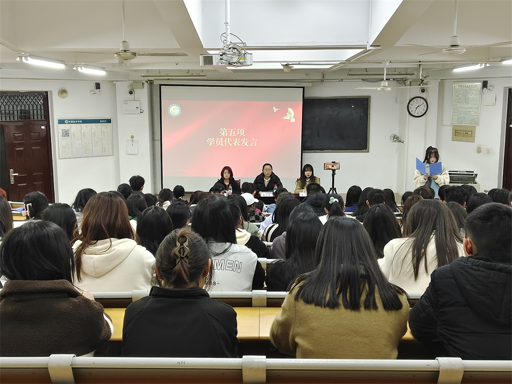 筑梦青马不负韶华,领航未来砥砺前行。在主持人张思凡对本届青马工程的班主任刘妙祎及组成等做了简要介绍后,开班仪式在庄严肃穆的国歌中正式拉开了序幕。班主任刘妙祎紧紧围绕青马工程的内容、要求和作用发表讲话,她提到,青年是祖国的未来,民族的希望,“青马工程”能够帮助青年树立正确的马克思主义观,有助于为党和国家输送一批家国情怀浓厚、能力素质突出的优秀青年政治骨干。她要求全体青马学员要牢记习近平总书记的嘱托,永怀“青马人”赤诚,加强专业学习,练就过硬本领,不断增强志气、骨气和底气,真正做到与新时代同步前行。