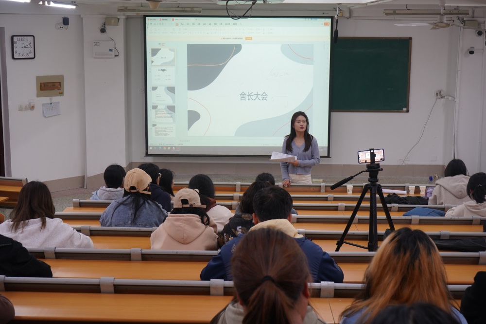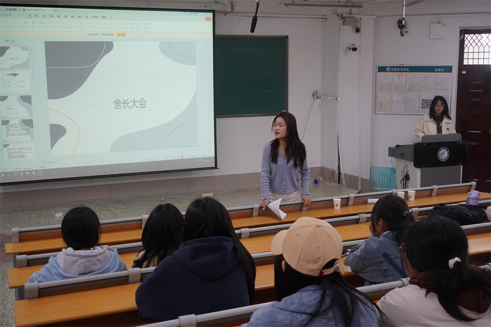 会上,杜老师说明了本次会议的具体流程,从住宿管理、宿舍安全和内务卫生三个方面展开讲述。她结合近期宿舍违规违纪具体情况,对表现优秀的宿舍予以嘉奖,倡导全体同学向此类宿舍学习,同时着重强调了住宿管理方面的不足,督促各位舍长做好管理与监督工作。