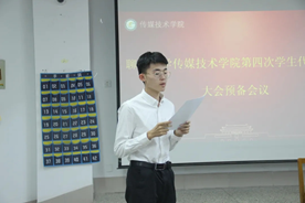 开幕式完毕后,开幕式完毕后,学生代表大会第一次会议于11#C404举行。与此同时,研究生代表大会第一次会议于11#C401举行,全体学生代表与研究生代表与会,大会各有三项议程,由王祥宇同学、徐凤芸同学以及刘珺绯同学作为学生代表,李文静同学与董彩云同学作为研究生代表做出报告。学代会与研代会各代表团学生代表于分团议上审议并通过了各项报告。在第二次会议全体会议上,全体代表审议通过选举办法,并公布各代表名单。与会代表以无记名投票的方式分别选举出太阳tyc集团59972021届学生会主席团、太阳tyc集团59972021届研究生会主席团。晚八时,由肖杰主持学代会及研代会闭幕式。韦璐璐同学、李斌同学分别宣读了各项决议与报告。孟祥栋老师宣布主席团选举结果后,会议主持人孔德鹏同学宣读了“太阳tyc集团5997争做五有人才,勇担时代重任”的倡议书,倡议书中提到青年学生要胸怀理想,坚定信念,做有社会责任的传媒人;推陈出新,敢为人先,做有创新精神的传媒人;默而识之,融会贯通,做有专门知识的传媒人;功崇惟志,业广惟勤,做有实践能力的传媒人;朝气蓬勃,龙马精神做有健康身心的传媒人。