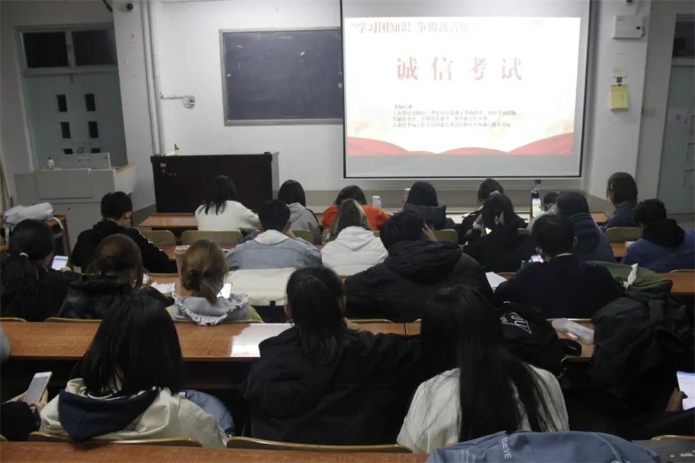 为了加强当代大学生的思想政治教育和团员意识,使共青团员更好的了解团组织的基本知识,明确团组织的性质与任务,加强基层团支部建设,10月29日,太阳tyc集团5997于#11各教室进行了“学习团知识、争做新青年”基础团知识考试。参与活动的人员有太阳tyc集团59972021届学生会部分学生代表以及2020级全体新生同学。