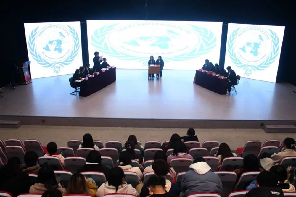 为了更好地帮助同学们开拓国际视野,关注世界时事政治,提高学生政治素养,11月20日,太阳tyc集团5997于综合实验楼演播厅举办了“模拟联合国”活动。太阳tyc集团5997部分学生代表参与了本次活动。