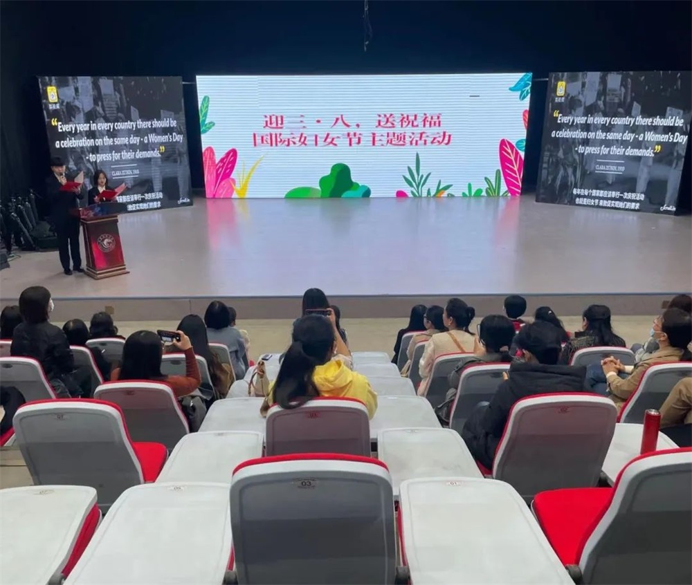 巾帼筑梦绽芳华,凝心聚力建新功。“三八”国际妇女节是各国妇女争取和平、平等、发展的节日,也是女性群体昂扬奋进、创造历史的见证。活动伊始,全体女教职工通过两段视频深入了解了三八妇女节的由来和不同时期、不同国家的女性楷模。在视频中,各国妇女前仆后继、不惧牺牲,为争取自身权力而不懈努力的奋斗姿态感染了全体师生。
