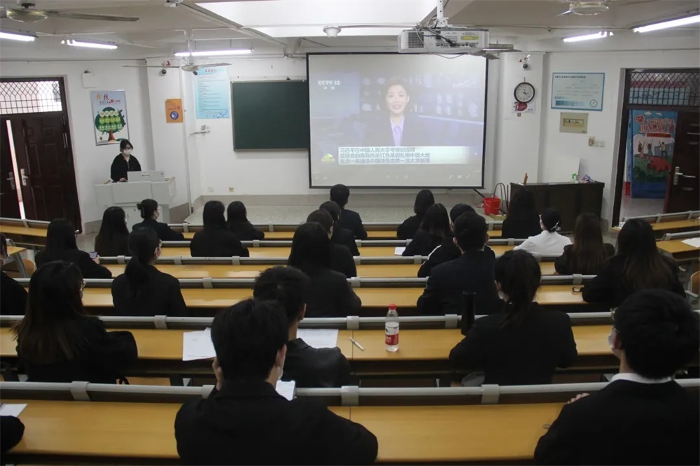 不负青春韶华,为民族担大任。本次活动以现场观看视频的方式为全体学生党员播放“习近平总书记在人民大学的讲话”。习近平总书记在讲话中提出了建设中国特色、世界一流大学,思想政治理论课建设,加快构建中国特色哲学社会科学以及为党育人、为国育才的四点要求。习近平用铿锵有力、深入人心的话语指出,立足新时代新征程,中国青年的奋斗目标和前行方向归结到一点,就是坚定不移听党话、跟党走,努力成长为堪当民族复兴重任的时代新人。希望广大青年用脚步丈量祖国大地,用眼睛发现中国精神,用耳朵倾听人民呼声,用内心感应时代脉搏,把对祖国血浓于水、与人民同呼吸共命运的情感贯穿学业全过程、融汇在事业追求中。