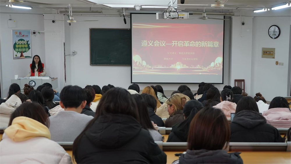 在宣讲过程中,宣讲人首先向学生们阐释了遵义会议的重大历史意义,着重强调了善于从历史中汲取智慧和力量是中国共产党持续前进的关键法宝。随后,她详细讲解了遵义会议精神的核心内涵,并指出坚持遵义会议精神对新时代中国特色社会主义事业不断获取胜利具有重要的引领作用。最后,宣讲人鼓励学生们深入学习并领会遵义会议精神,将这一伟大精神融入血脉、付诸实践,为实现中华民族伟大复兴的中国梦而努力奋斗。