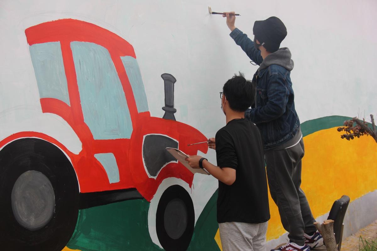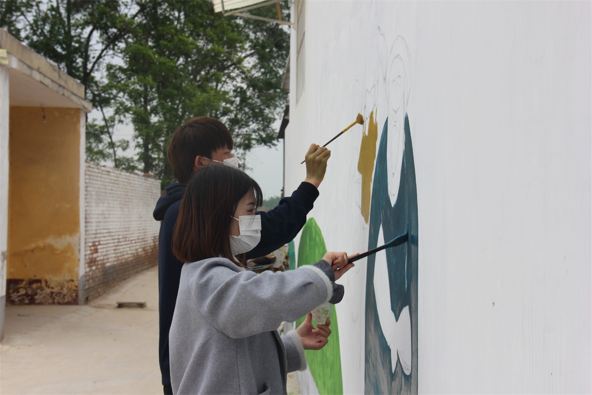 同学们按照既定图画,小笔勾勒、大笔挥毫,起形、调色、测绘、涂色,每一个步骤都一丝不苟、精益求精,力致于将乡村新面貌通过手中的画笔展现在村民的视野里。过程中,安楼村村委会成员带领魏建国书记一览乡村景观并给忙碌的同学们带去鼓励与关怀,他们给予同学们高度认可。同学们纷纷表示,此次乡村墙绘志愿服务活动充实而意义颇丰,既丰富了学生们的课余生活,又促进了美丽乡村、复兴乡村的建设。
