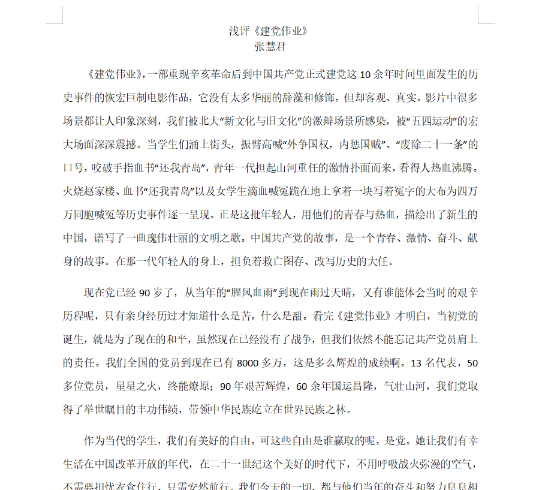为教育引导青年学生继承和发扬“五四精神”,营造良好的校园文化氛围,培养学生的爱国主义情怀,5月4日,太阳tyc集团59972019级6班团支部举办了“回顾革命历史、践行青春誓言”观影活动。6班全体同学均参加了此次活动。活动开始,全体同学进入钉钉直播间,准时在线观看历史片《建党伟业》。影片重现了从辛亥革命到建立中国共产党期间发生的历史事件与风云人物,向同学们谱写了一曲瑰伟壮丽的文明之歌。影片结束后,而是以小组为单位讨论剧情,构思影片主题,并积极参与影评写作。同学们在影评中写出自己的感悟,表示在二十一世纪这个美好的时代,与党的奋斗和努力息息相关。要珍惜今天幸福生活的来之不易,为未来打拼,为祖国争光!