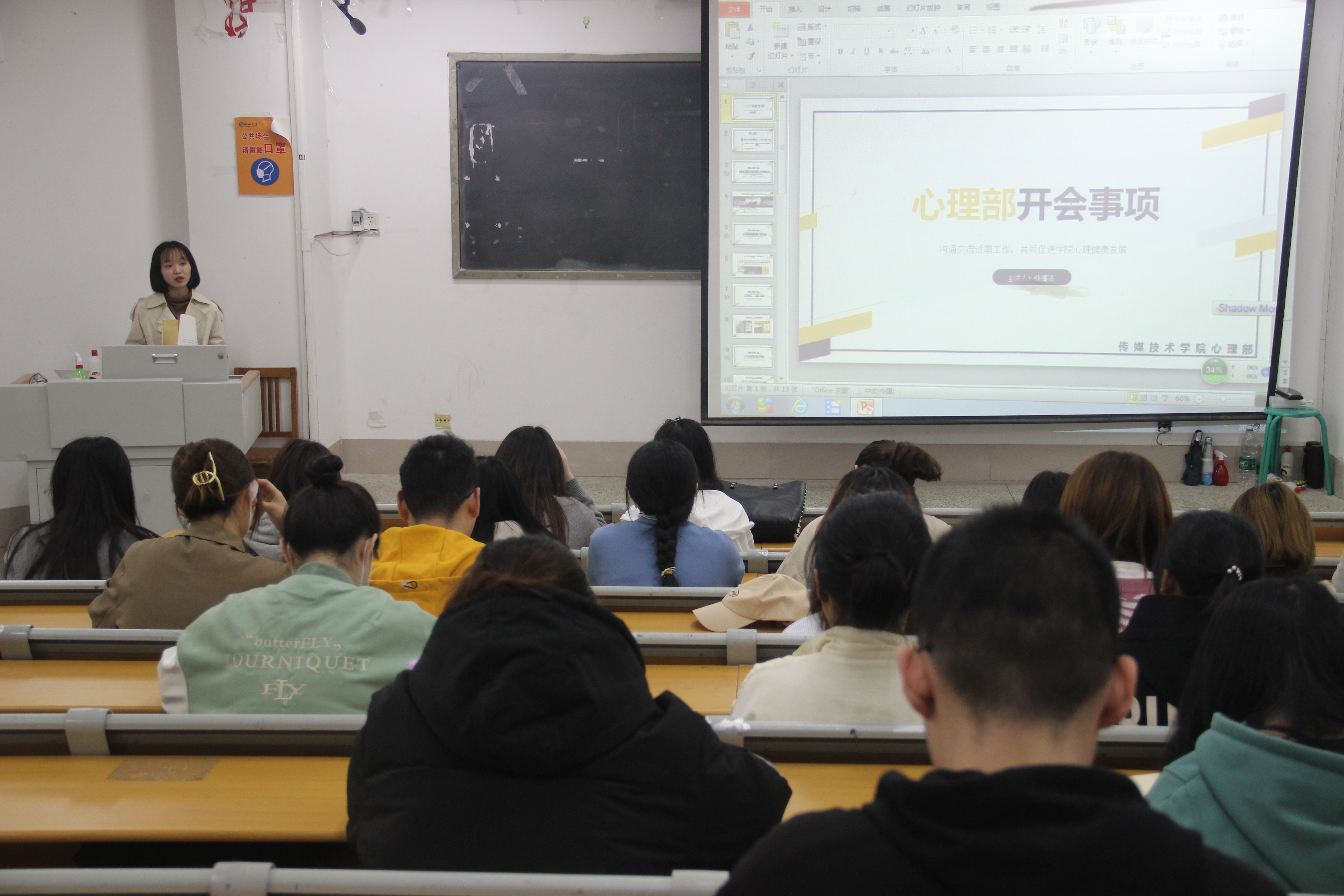 传递正能量,演绎心生活。张廉洁同学结合PPT,从校级朋辈心理辅导员培训、心理知识竞赛、心理报刊及讲座、学院特色心理活动、工作建议与要求五个方面出发,简洁条理地向各位朋辈心理辅导员与心理委员系统梳理了本学年心理部的工作安排与进程,并就即将到来的“心理健康月”提出工作建议与活动计划。同时,郑新老师结合自身心理工作经验,鼓励各位朋辈心理辅导员与心理委员密切关注身边同学的心理动向。她强调,心理健康在当下大学生素质健康教育中的地位愈发重要,朋辈心理辅导员与心理委员的责任也更加重大,各位心理工作者应当深入学生当中,对同学们的心理健康状况做到全面详尽的掌握。郑新老师的发言结束后,王珍同学结合具体案例,向同学们分享自己在实习期间的工作经验,并表示自己会竭尽全力,帮助大家做好心理工作。会议在同学们的热烈掌声中圆满结束。