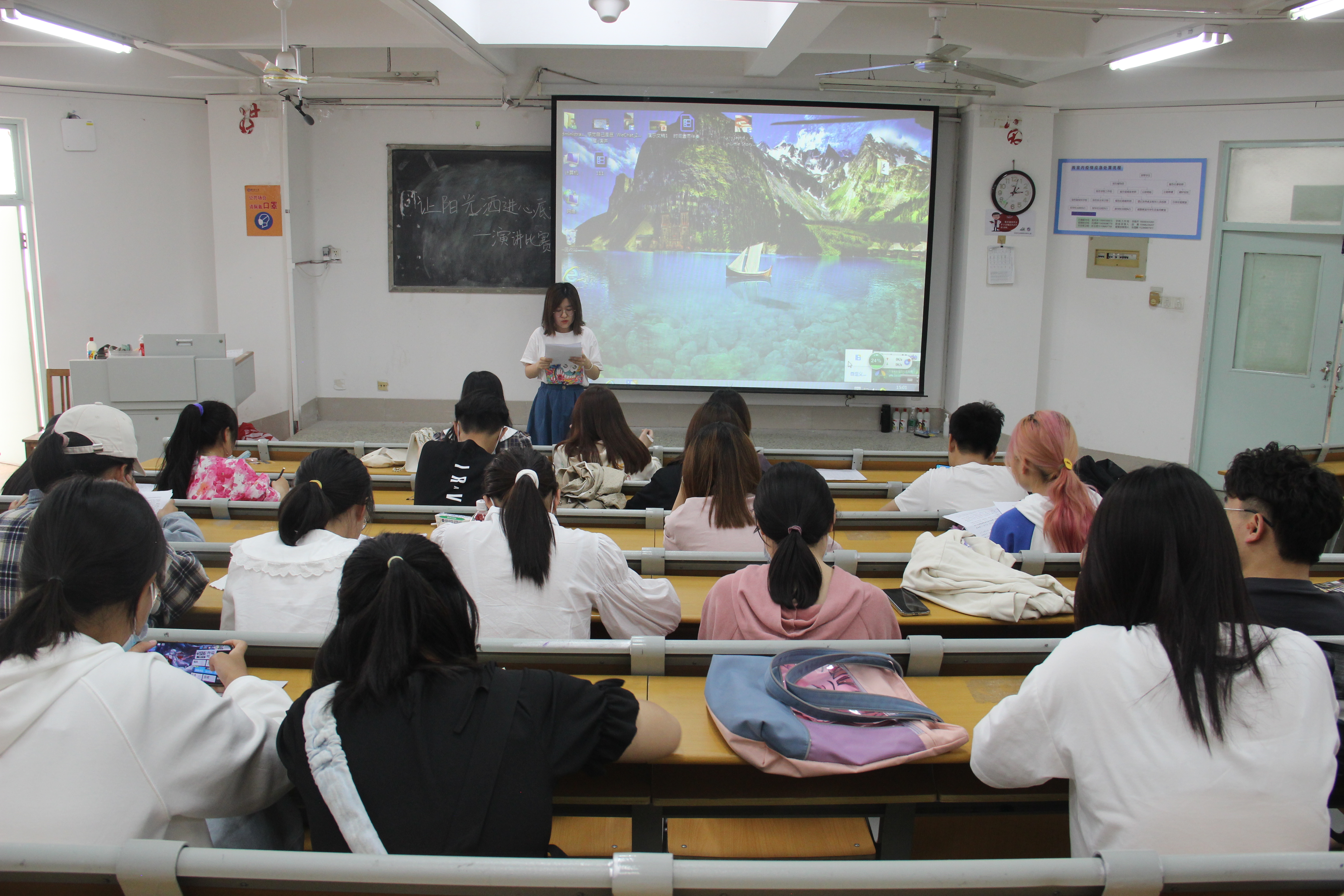 健康的心灵是幸福的源泉。同学们广泛收集材料,为演讲做了充分准备。谢玉璐同学感情饱满地为同学们分析了生理健康与心理健康对当代大学生的重要性,阐述了心理委员这一职务的必要性;张珂同学从生活中的小事、实事中举例,提出自己对一些心理问题及不良状态的调解方法;姜子卿同学则引用自己的亲身经历,讲述自己对抗心理疾病的过程,她提到,自信是人们最重要的武器,不必在意他人的眼光,每一个人都是一朵玫瑰,总有适合的环境和时间来开放。参赛选手们还为各自的演讲搭配了背景音乐与PPT,用自己独特的方式向同学们传递心理健康的正能量。活动接近尾声,裁判对参赛选手进行了逐一点评,并宣布了比赛成绩。比赛结束后,同学们纷纷表示,自己从他人分享的经历和故事中受到了鼓舞,同时也感受到了积极的力量,未来会以阳光向上的心态学习和生活。活动在同学们热烈的谈论声中圆满结束。