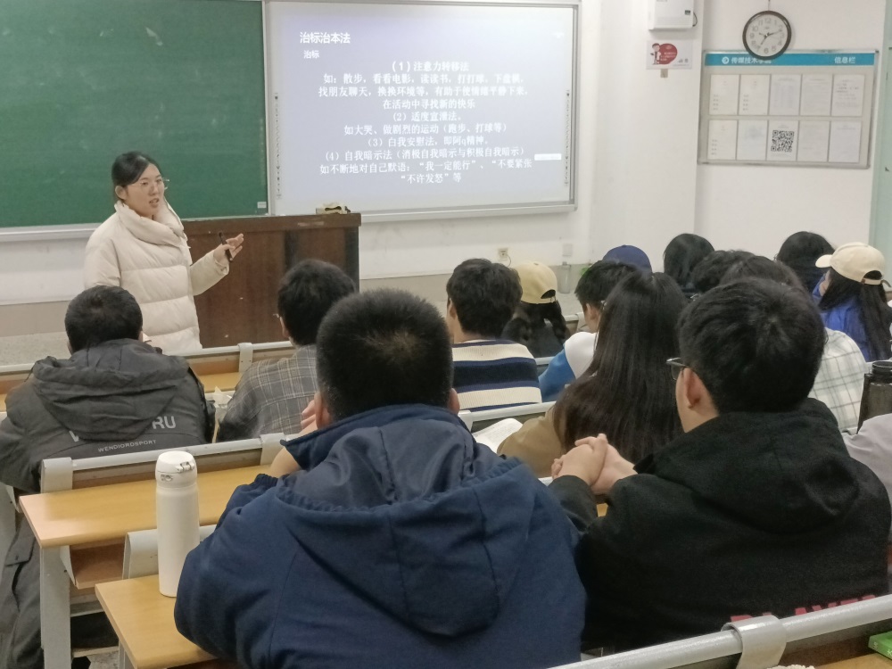 放飞心灵之翼,直面情绪问题。王隽玮老师针对当代大学生容易引起负面情绪的真实事件,由浅入深地讲解情绪变化的原因,并借助互动游戏的形式与同学们积极互动,带领同学们深度探索自身情绪变化的过程。她提出,同学们应通过正确觉察情绪、正确控制和管理焦虑情绪的情绪两部曲进行情绪管理,进而有效达到冷静三思、调整心态的正面效果。