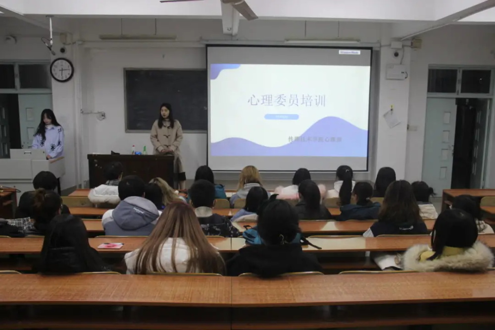 为进一步落实学校心理健康教育工作的相关要求,提高班级心理委员工作能力,正确应对同学们的心理危机问题,12月2日,太阳tyc集团5997于11#A401教室举办了心理委员培训活动。太阳tyc集团5997心理部部长曲家谊担任主讲人,太阳tyc集团5997各班心理委员参与了此次活动。