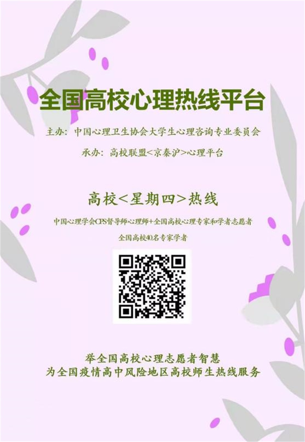 1、全国大学生心理健康教育专委会设置热线咨询电话