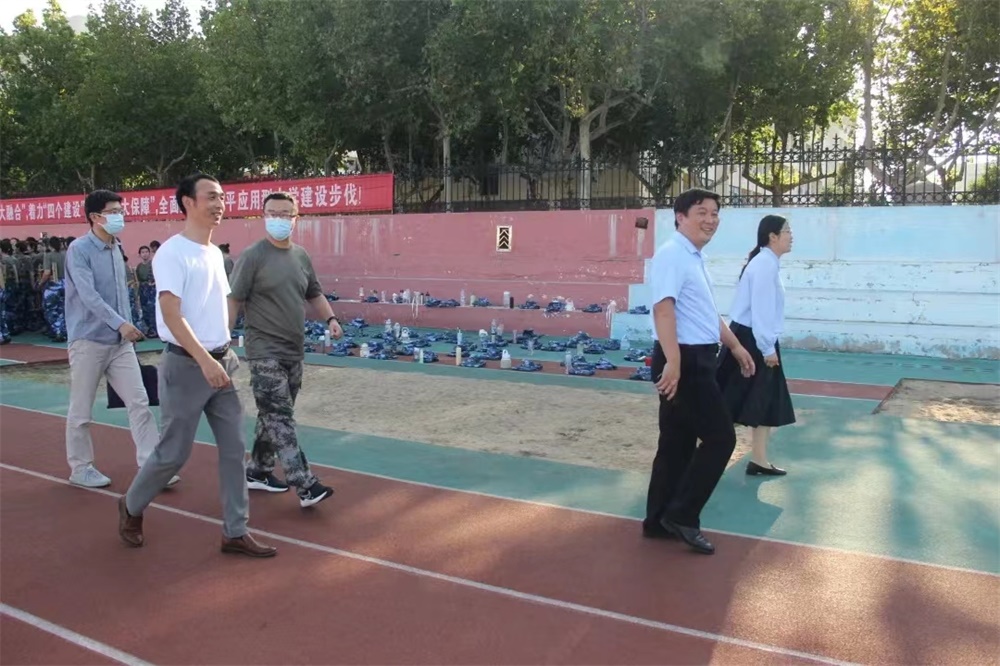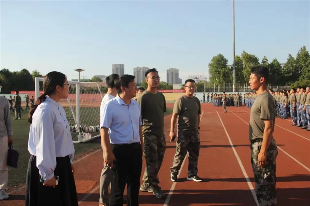 士气高昂铸军魂,亲切慰问暖人心。在郭峰的带领下,学院领导、老师来到训练场,观摩大一新生军事体能训练,了解军训工作开展情况,并向带队教官和新生表示亲切的慰问。郭峰表示,军训是青年学生磨炼意志的宝贵机会,是一堂爱国主义教育的必修课,希望同学们用心感悟军训精神,锤炼意志品格,锻炼身体素质,展现当代青年的青春风采。
