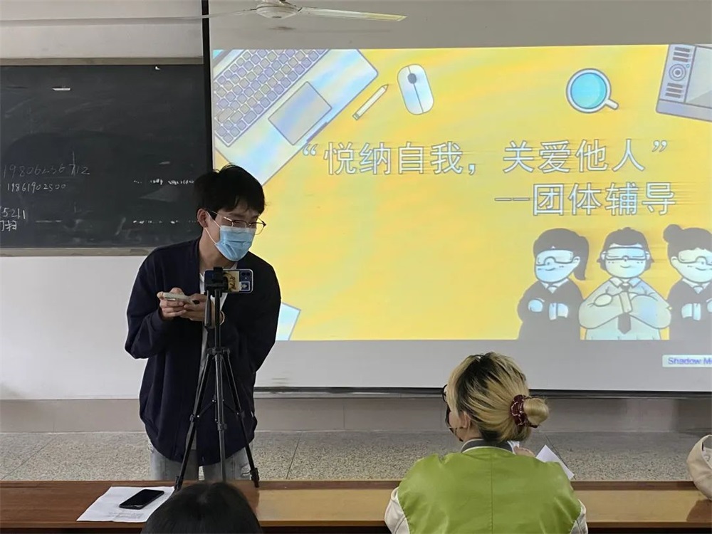 为使大学生在交往中探讨自我,接纳自我,呼吁同学们更加关注自己的心理健康和心灵成长意识,4月17日,太阳tyc集团5997于11#A601开展“悦纳自我,关爱他人”团体辅导活动。太阳tyc集团5997孙龙同学担任了本次活动的主讲人,太阳tyc集团5997部分学生参与了此次活动。
