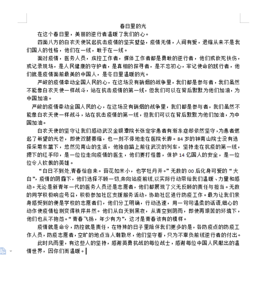 学校自开学以来便一直处于封校状态,这难免会引起同学们的焦虑感,但是在封校期间我们身边也有很多暖心的事情发生。它是同学朋辈之间的相互加油鼓劲;是老师们熬夜赶出抗疫方案;是学校防疫工作者们冒雨为大家做核酸;也是食堂叔叔的一句“放心,我们与你们共进退”。通过此次活动,同学们积极响应,书写自己心中的感人故事,当同学们一笔一笔的记录下这些美好瞬间时,那种作为聊大人的自豪感和幸福感不由得涌上心头。书写是一种缓解焦虑的方式,能够极大地治愈同学们的心灵,可以最大限度的降低同学们的焦虑情绪,帮助同学们树立信心,从而更加的适应封校生活。