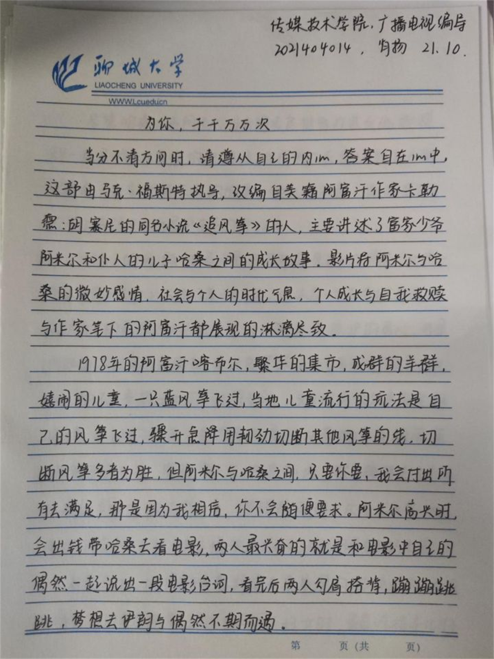 此次心理电影赏析观看的影片是《追风筝的人》,有一种友情,无关于任何,只是为你,千千万万遍。身为大学生的我们,交友是很重要也很有意义的一件事,交好友,交益友,对我们大学生来讲很有必要。这部电影表达出真正的朋友是会在你困难时帮你走出困境,朋友能更好的提高相互关怀和合作的能力。活动过程中,同学们认真的观影,领会电影的教育意义,影片也潜移默化的增强了同学们的心理建设,充实同学们的心灵。观影结束后,同学们就影片写下了近千字的心理感悟,在此过程中,也了解到心理健康的作用,对心理知识的宣传起到推进作用。心理问题是当代大学生最常见的问题,也只有积极的宣传心理知识,提高自我心理健康才能更好的度过大学生活。