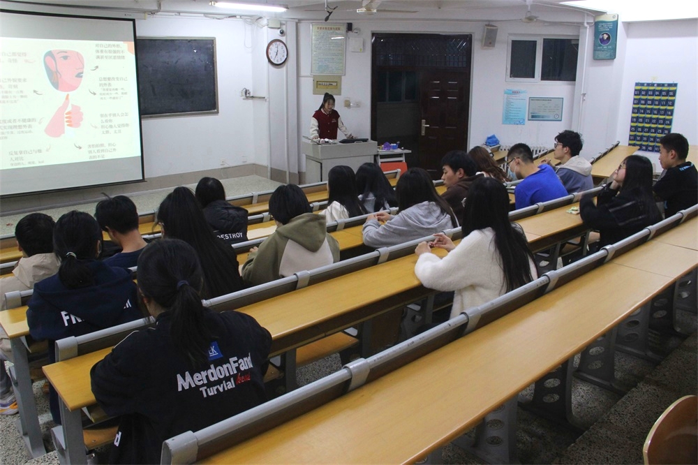 为宣传普及心理健康安全知识,提高大学生心理健康素质,发挥朋辈心理辅导的积极作用,使大学生把握心理调节技能,4月15日,太阳tyc集团5997于11#C407举办了“拒绝焦虑,向阳盛开”阳光心理大讲堂活动。由郑金铭担任本次活动的主讲人,太阳tyc集团5997部分学生参加了此次活动。