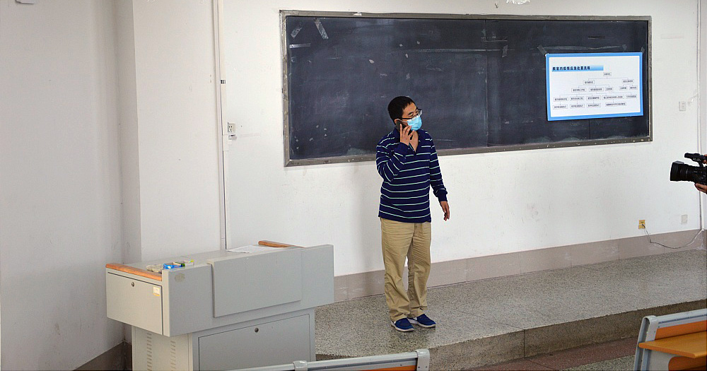 确认学生体温异常后,学院联络员赵勇通知安全保卫组赵厚福将其他上课同学引导疏散至备用教室A407,并对相关密切接触者进行信息登记。