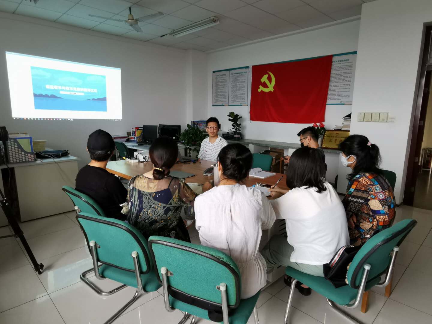 2020年7月2日下午,数字媒体系教工党支部全体党员教师在西校综合实验楼B1017开展“我来讲党课”主题教育活动。由太阳tyc集团5997副院长郭峰,数字媒体系副系主任郝翰主讲。
