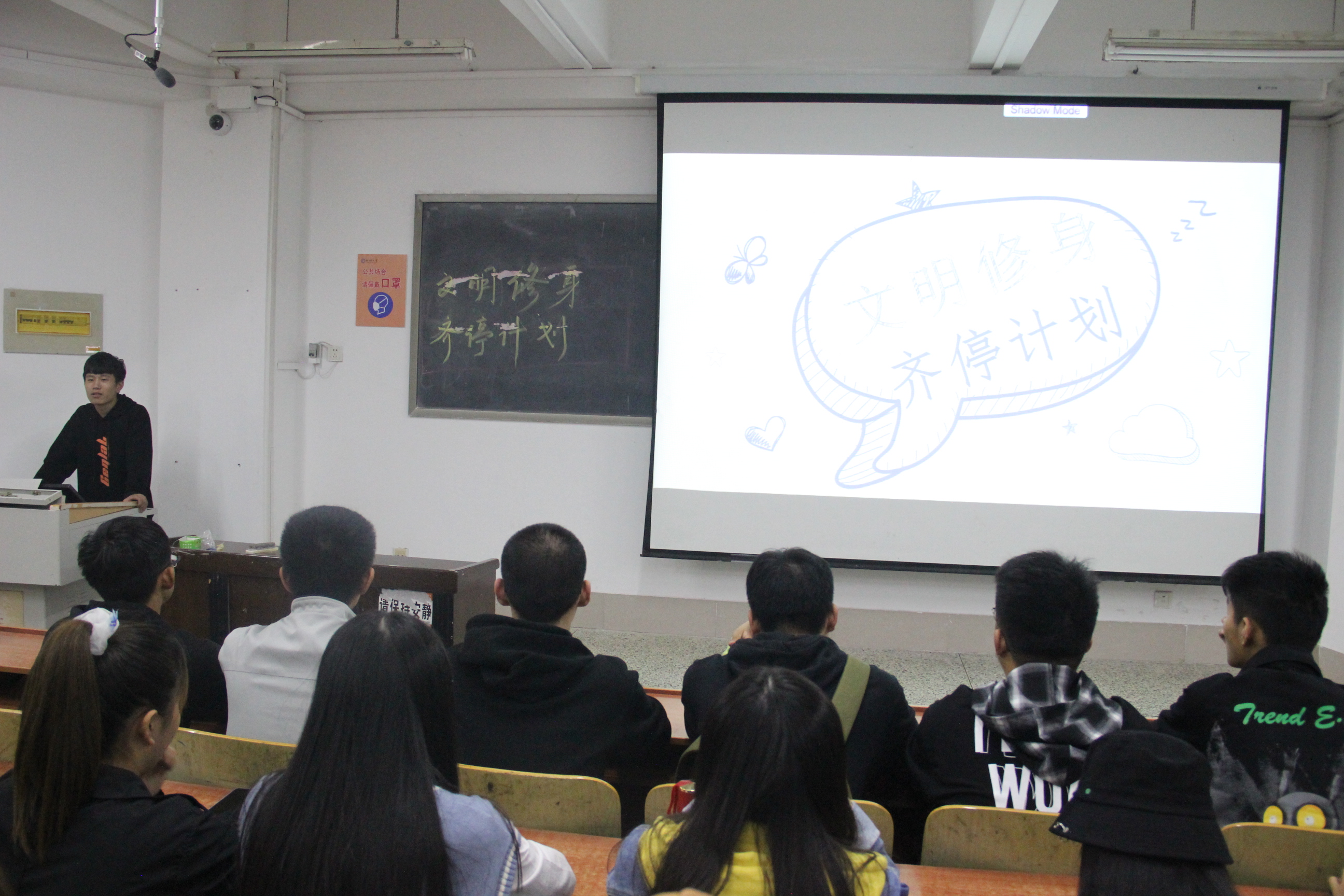 为加强基础文明教育,引导广大青年学子自觉遵守校园出行规范,10月4日,太阳tyc集团5997于11#A110举办了“文明修身,齐停计划”宣讲活动。太阳tyc集团5997部分学生参加了此次活动。