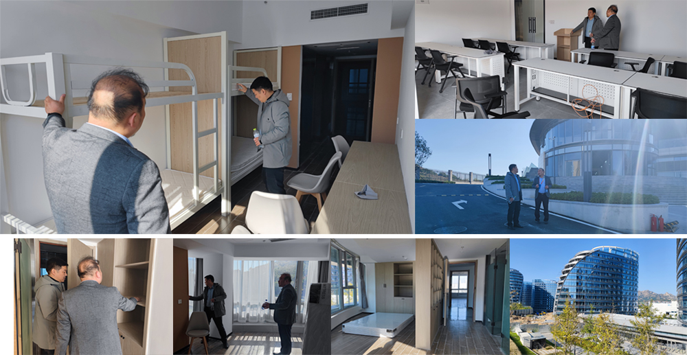 一行四人首先考察了教学及实践基地。重点考察了学生宿舍楼和教学楼及周边环境,走进宿舍和教室详细了解了内部情况及设施。并与公司相关人员沟通交流下一步具体详细的室内布置和装修方案,确保提供给学生安全舒适的生活和学习环境。