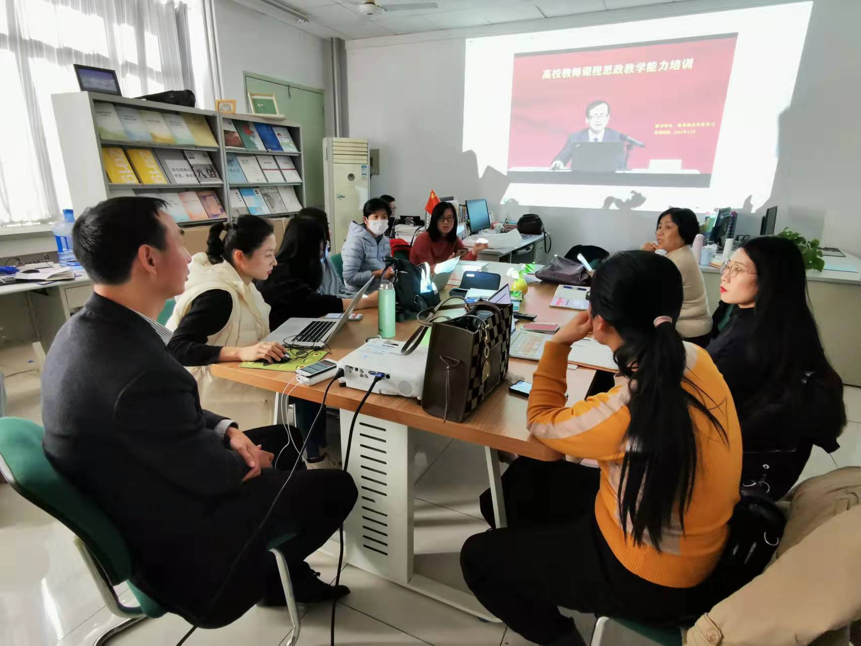 11月25日下午,数字媒体系全体教师在西校区实验楼B1017参加了全国高校教师培训中心与新华网联合举办的课程“思政教学能力线上培训”。