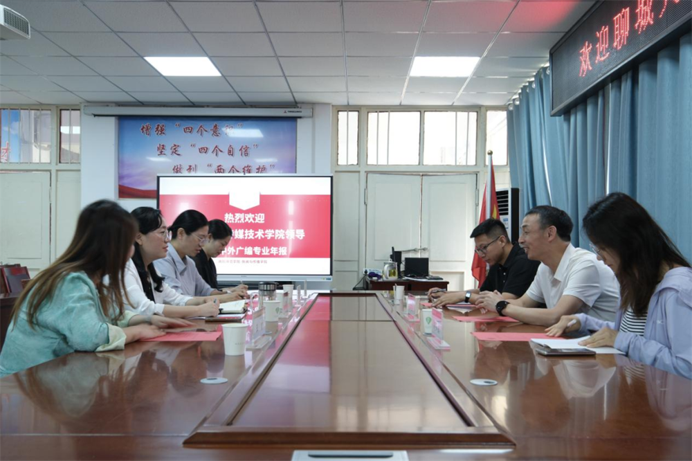 5月12日,太阳tyc集团5997副院长秦建波率队赴南阳师范学院新闻与传播学院考察交流,影视编导与技术系副主任何德民(中韩合作办学项目副主任)、融合发展办公室主任赵阳磊同行。南阳师范学院新闻与传播学院院长李娟红、副院长李乐、广播电视学系主任王昉(中外广播电视编导专业负责人)、办公室主任田冬晓参加座谈。